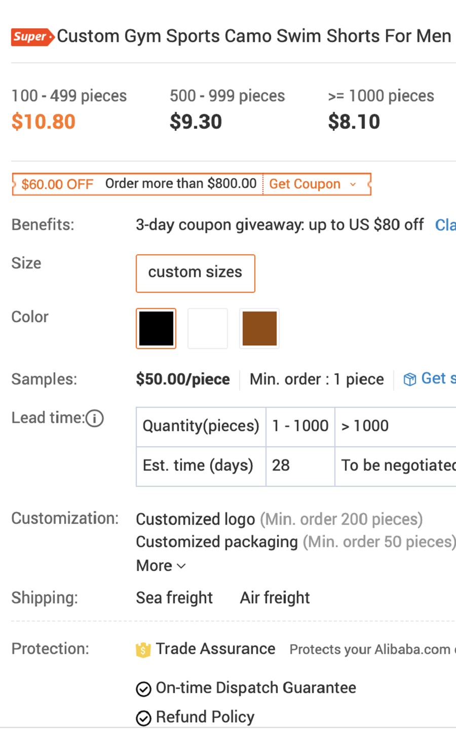 What’s great about this is that a sample of your custom design is only $50 and you can get custom packaging at only 50 pieces. 200 MoQ for your own logo and the end cost is only about $10 per unit.