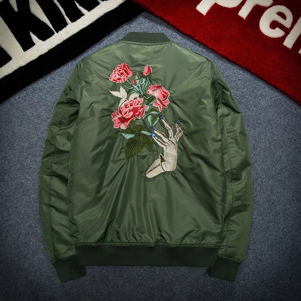 This is one of my favorites out of the options they offer. This is a satin-feel bomber jacket. Its obviously not real satin, but its embroidered with some really nice ideas.